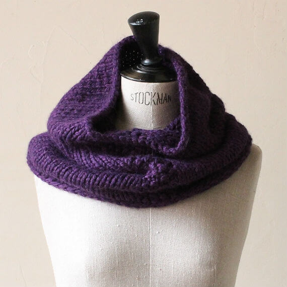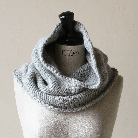 輪で編みながら、引き返し編みをして立体的につくります。太い針で編むので、スピーディに編み上げたい方に。引き返し編みの練習にもおすすめです。