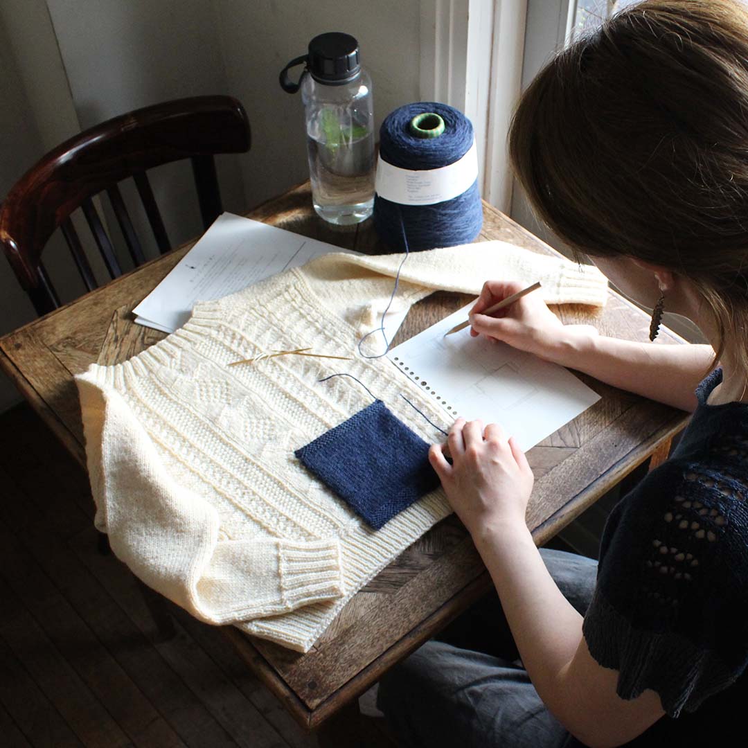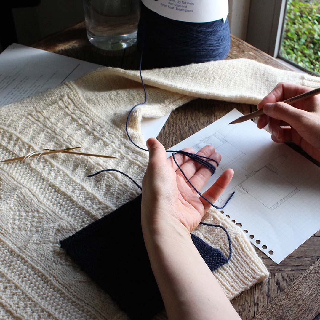 ムーリットのオリジナル「ガーンジーセーター パターン」をベースに、自分だけのガーンジーセーターを編んでみませんか?