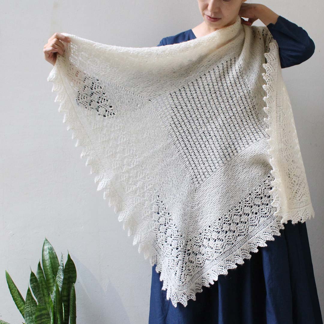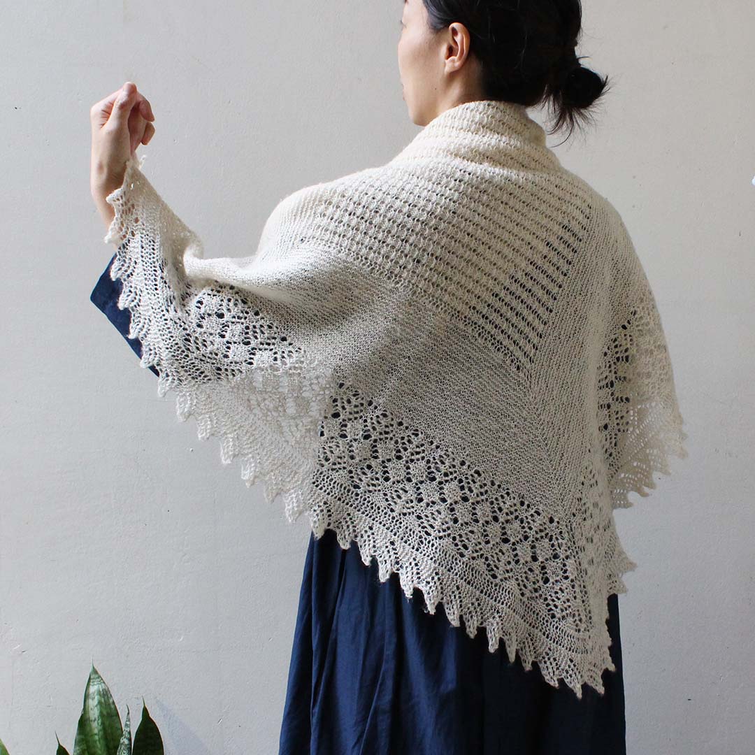 ムーリットの書籍「編みたい糸で、編みたいパターン」掲載作品「シェットランドウールのショール」を編んでみませんか?