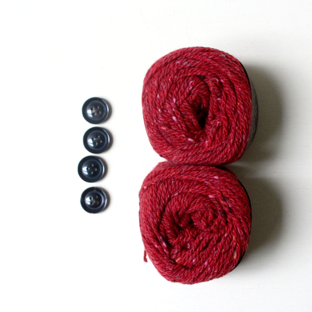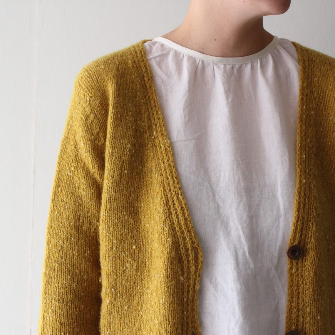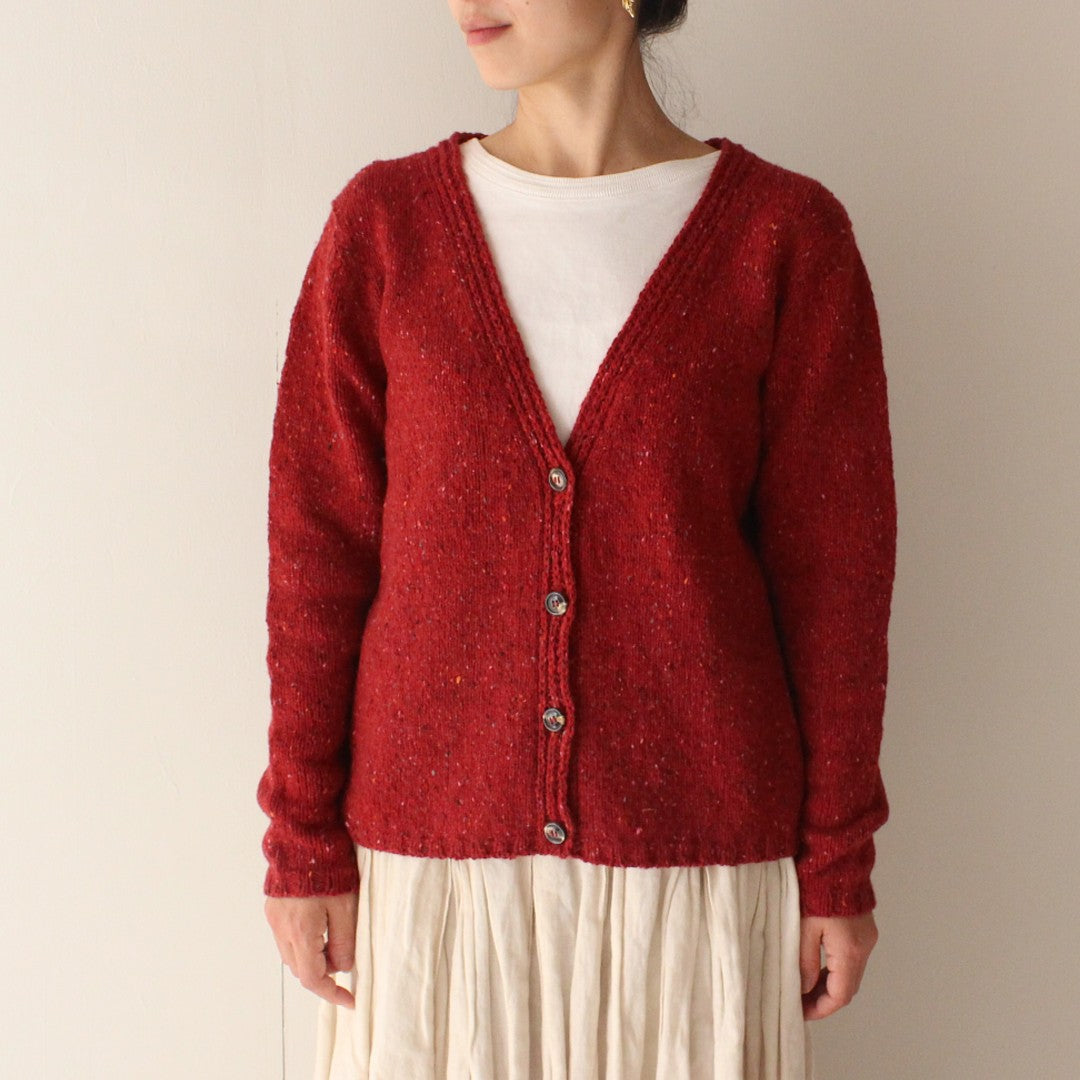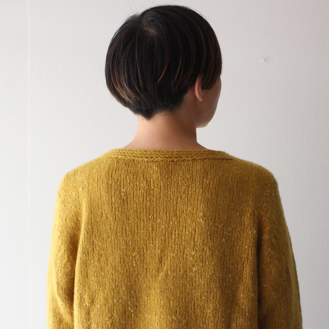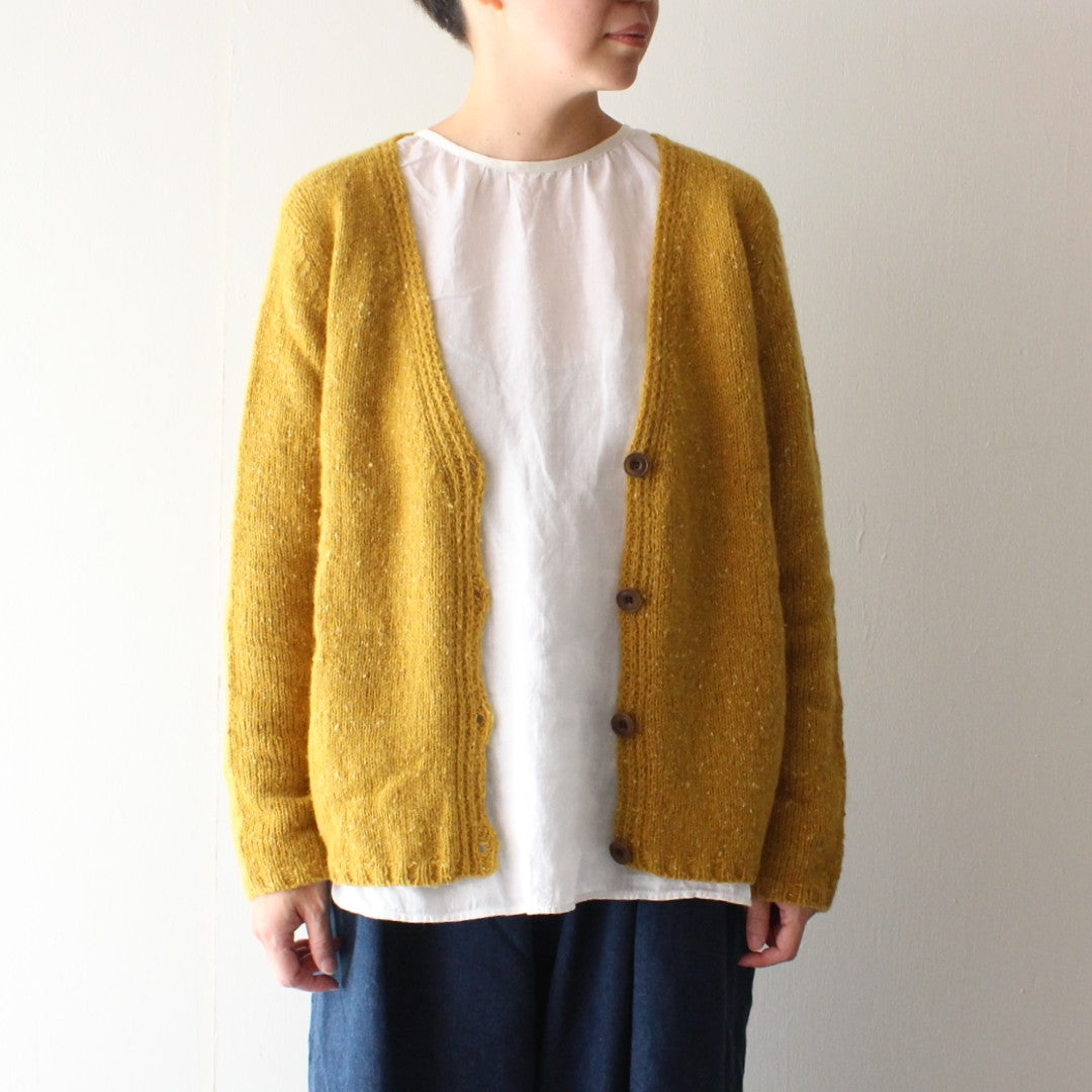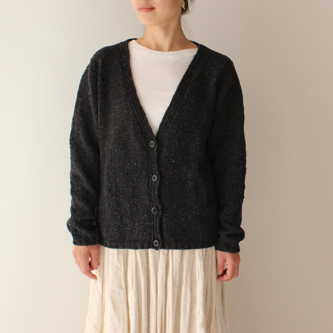 メリノウールとカシミアをブレンドしたROWAN「カシミアツイード」で編む、Vネックカーディガンのキットです。