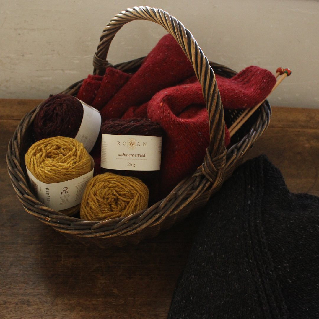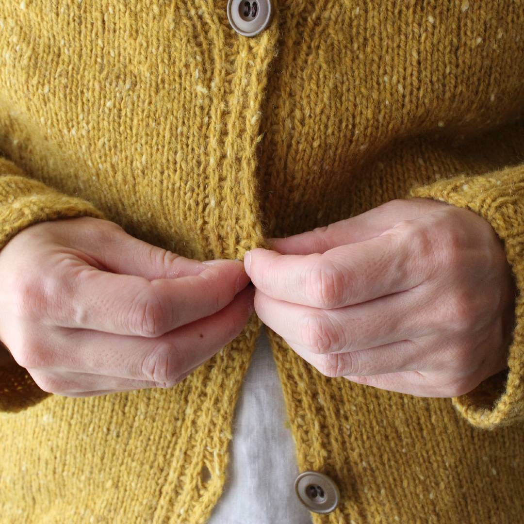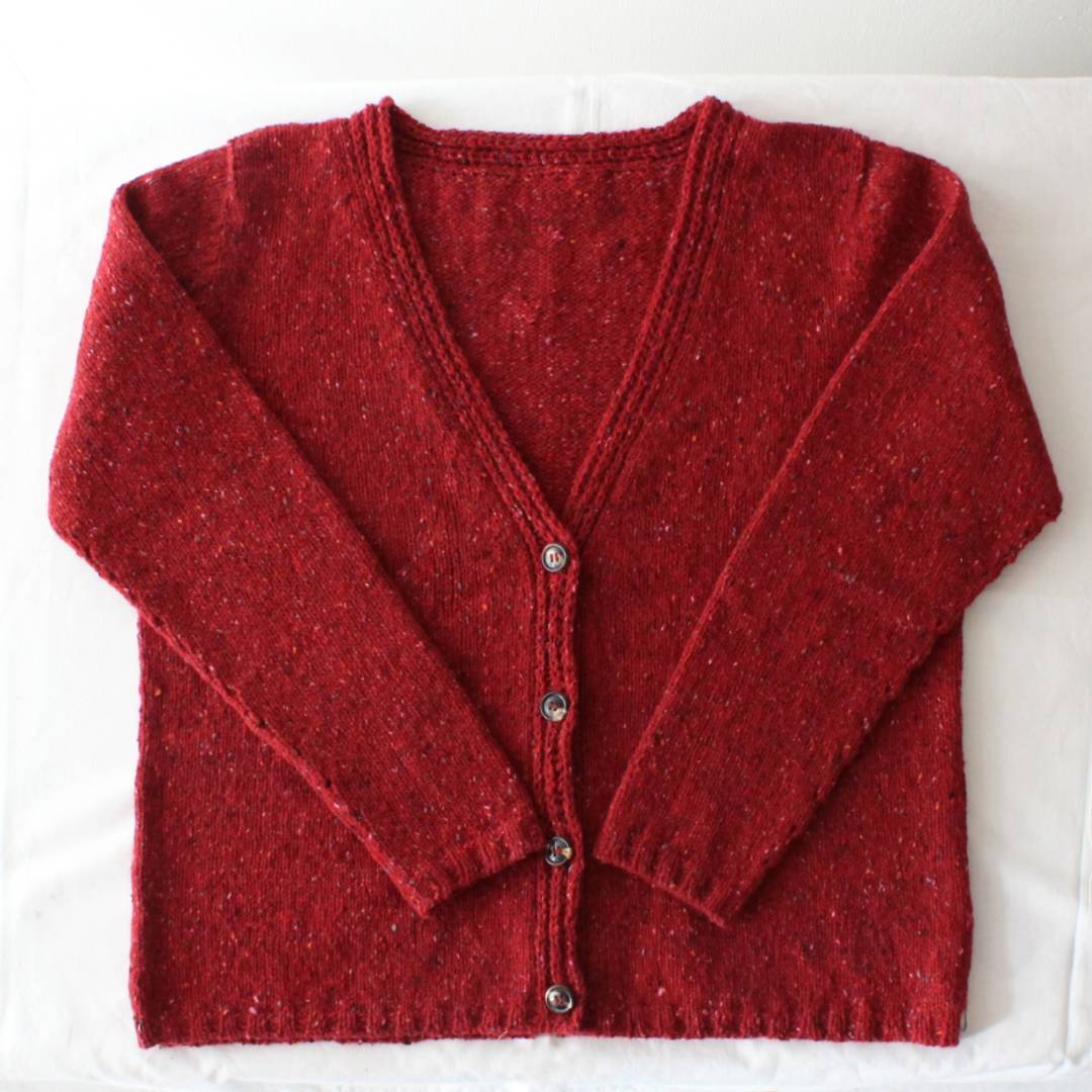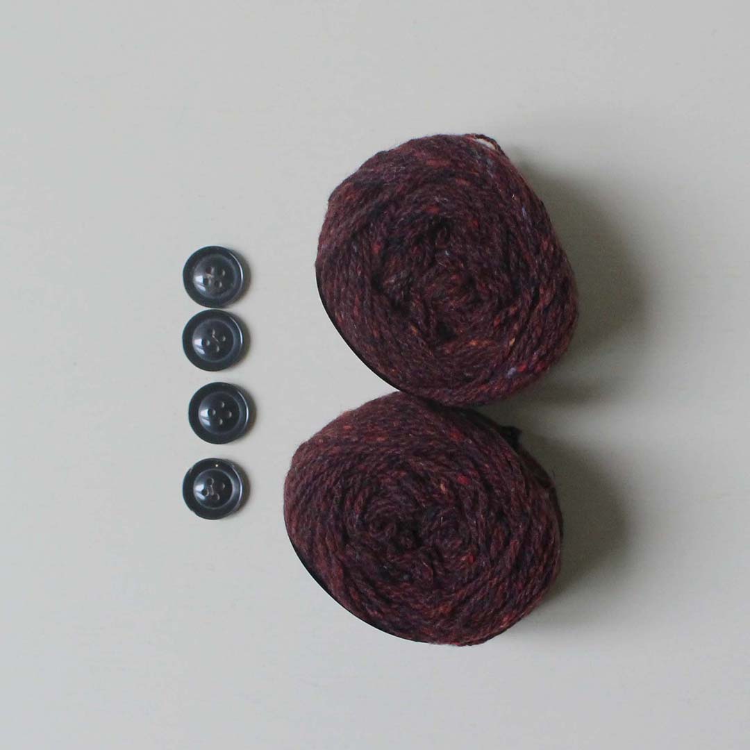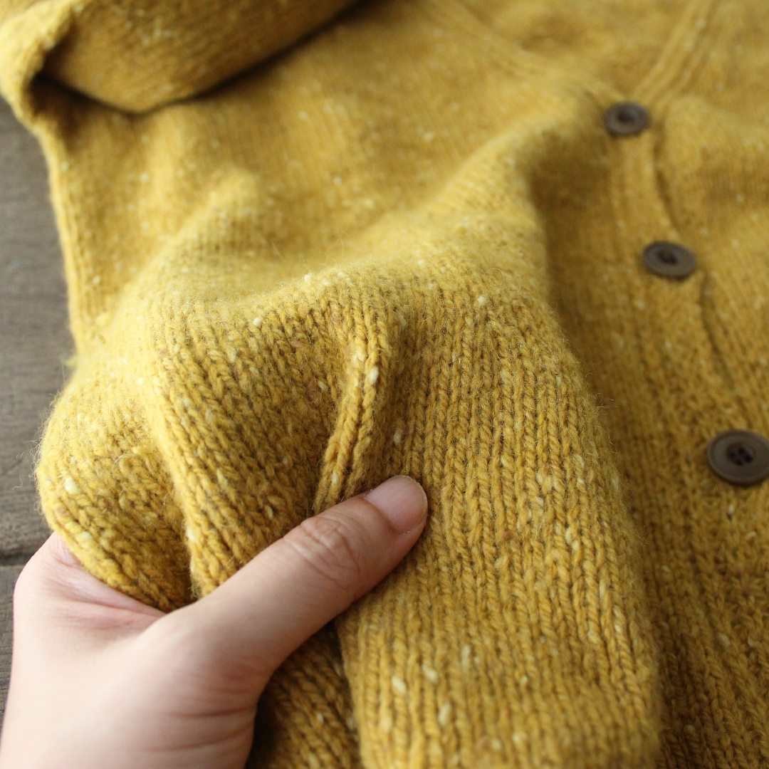 メリノウールとカシミアをブレンドしたROWAN「カシミアツイード」で編む、Vネックカーディガンのキットです。