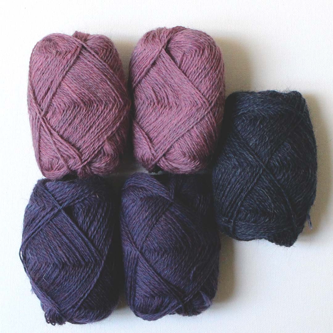 【カラーA】lupin lilac(2玉)/heather purple(2玉)/denim mix(1玉)