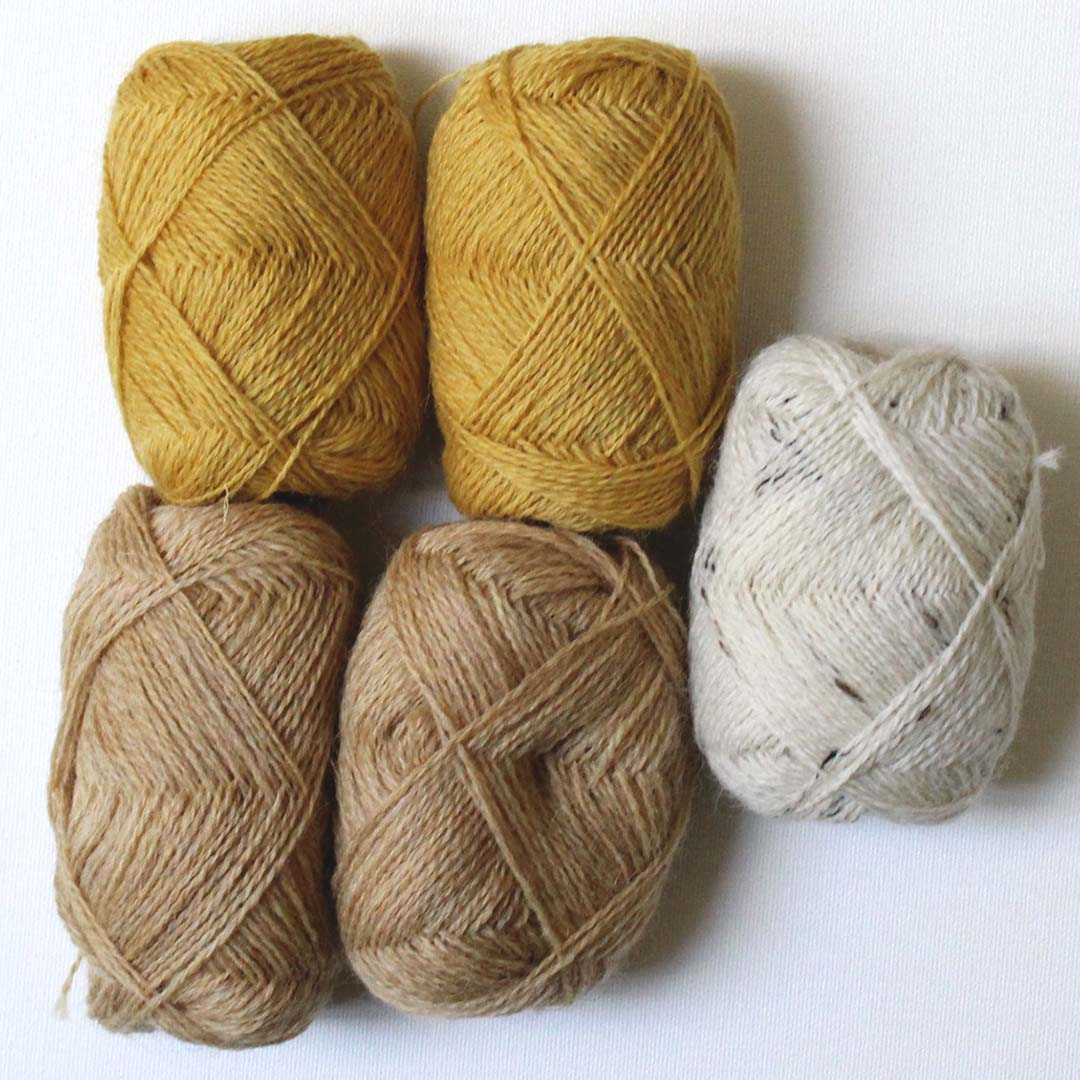 キットに使用した糸 Shepley Yarns「PENNINE」は100%ブリティッシュウールの上質な手編み糸。羊毛の向きをきれいに揃え、繊維の方向に沿って紡いだ滑らかな梳毛糸です。
