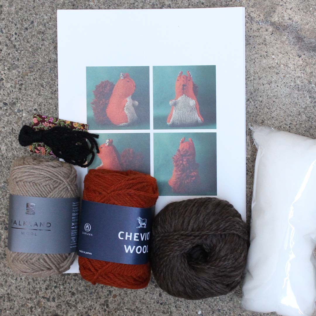 金森さんがデザインした動物のぬいぐるみを、ムーリットが毛糸を編んでつくる作品として再構成。編み物好きのみなさんに楽しんでいただけるキットにしました。