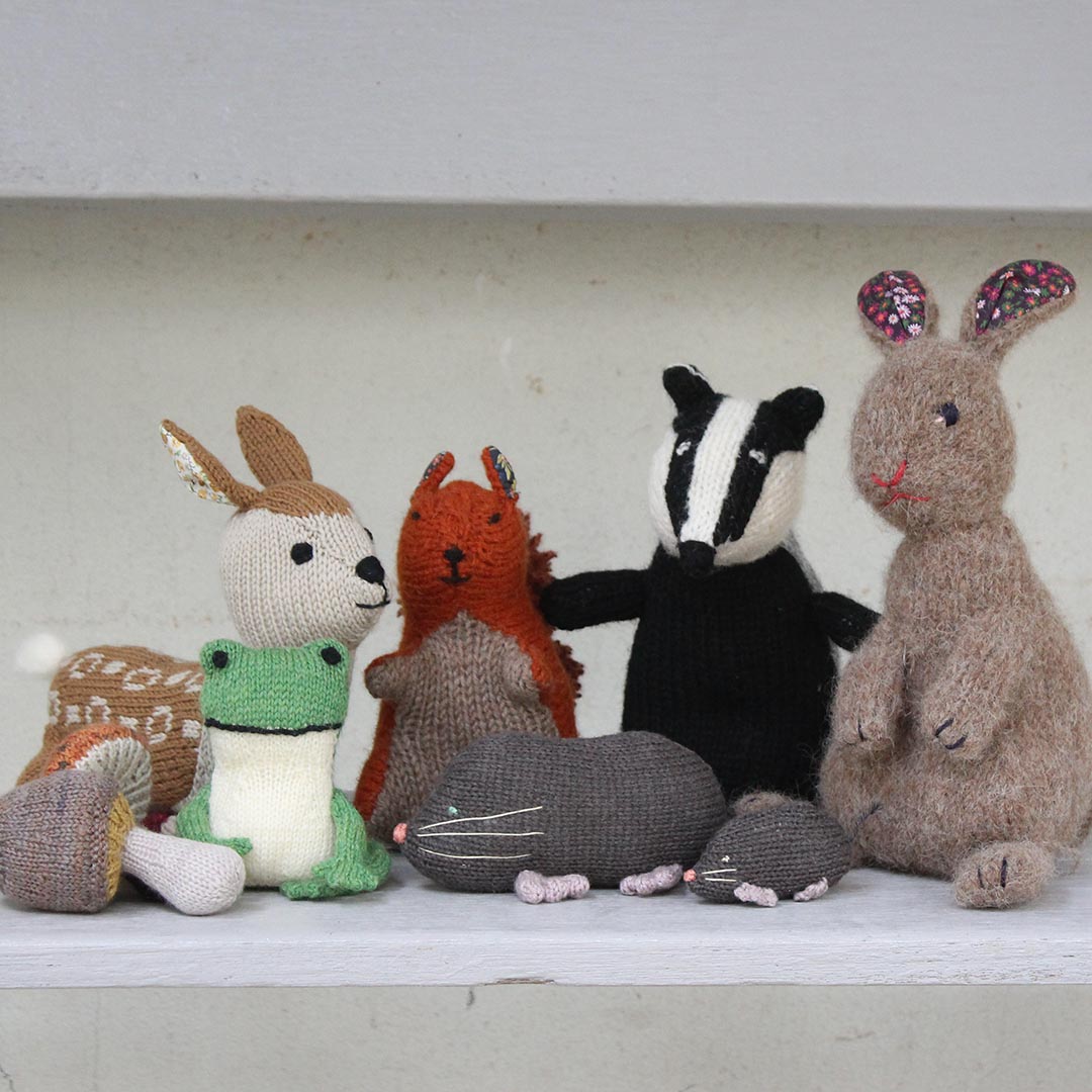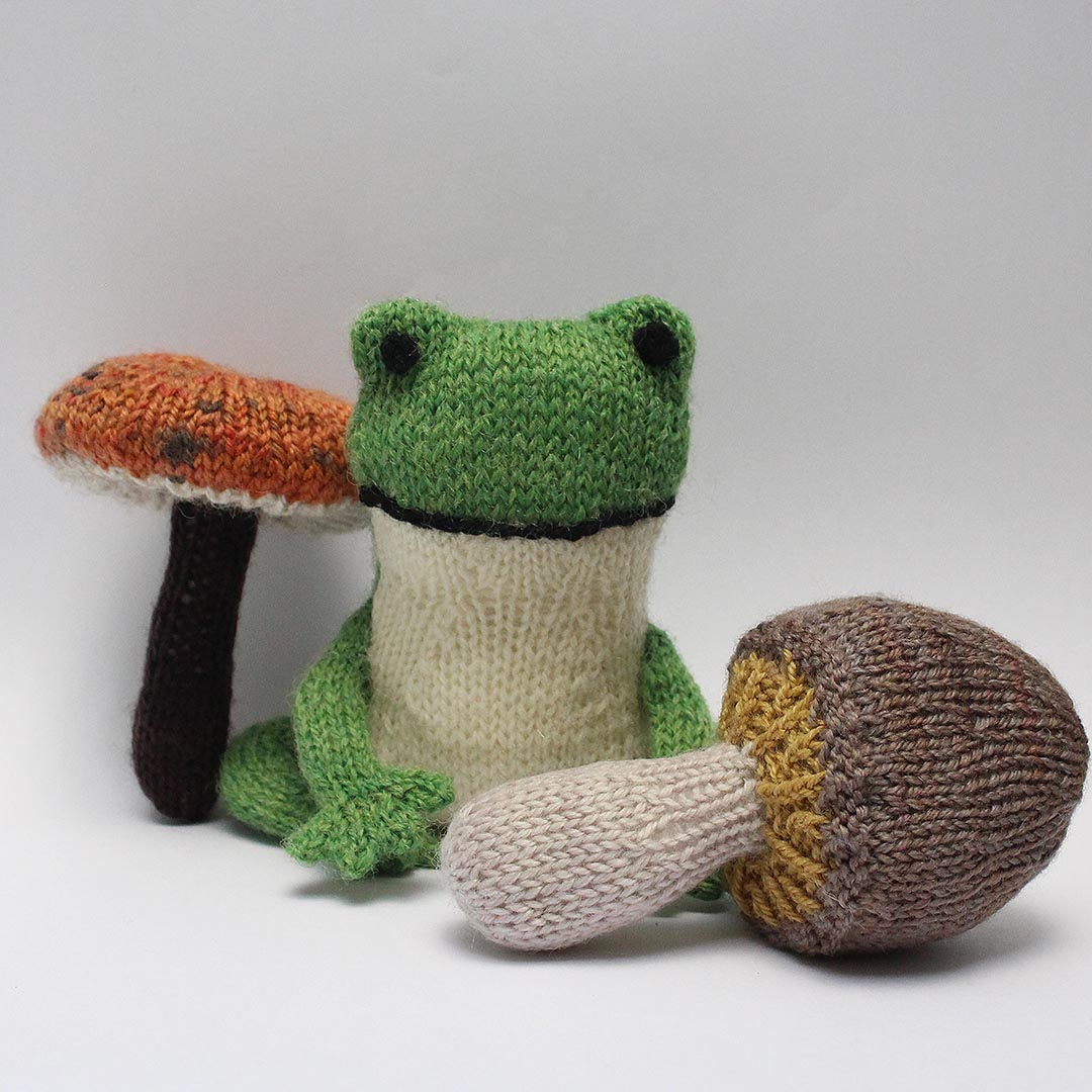「森のともだち」前半キット5種類(りす・あなぐま・うさぎ・もぐら・こじか)をすべて揃えた方で、「Tipsy the Frog」購入の方には、スペシャルギフトとして「きのこ」キットを一緒にお届けします。