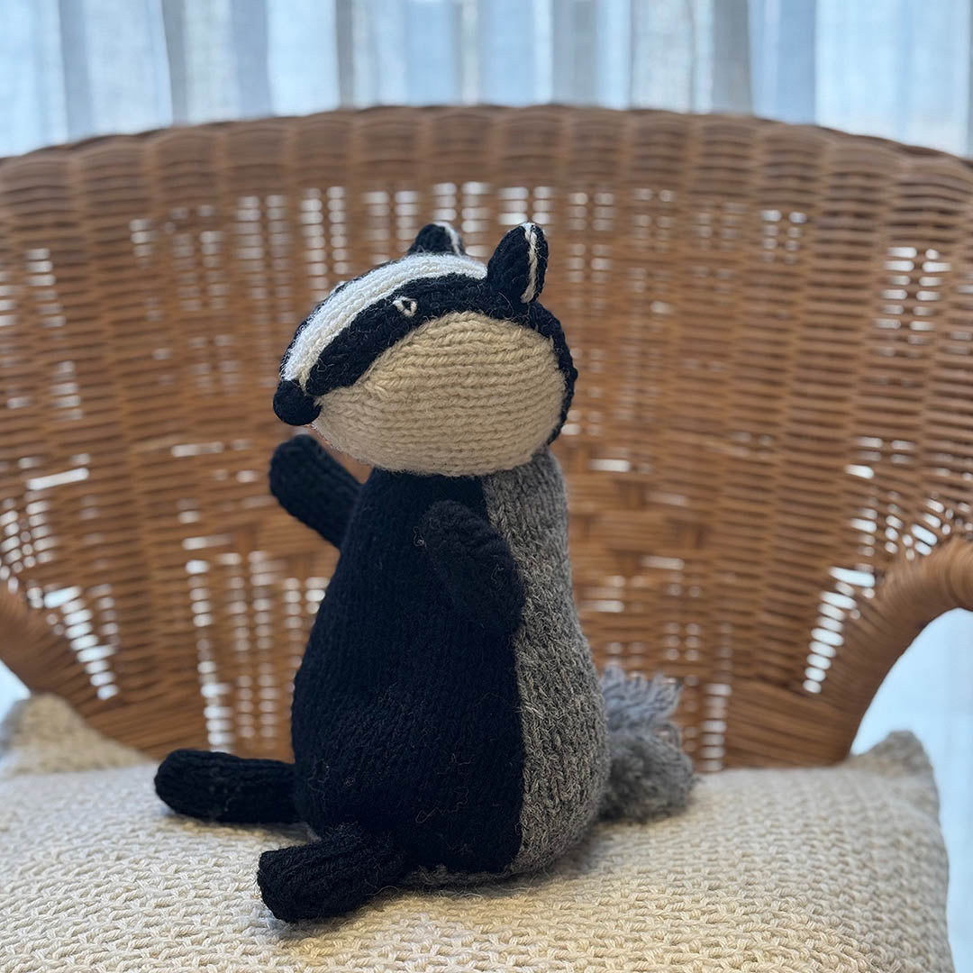 手編みならではの表現を最大限に活かしながら、制作工程にはあみぐるみ、ぬいぐるみ両方の技法を盛り込んで、愛らしい姿のあなぐまになるよう工夫しています。