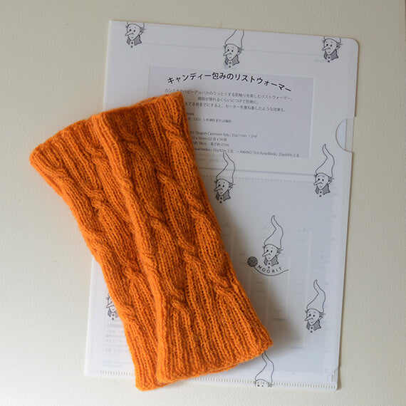 キャンディの包みをイメージしたなわ編みがかわいいリストウォーマーのパターンです。
