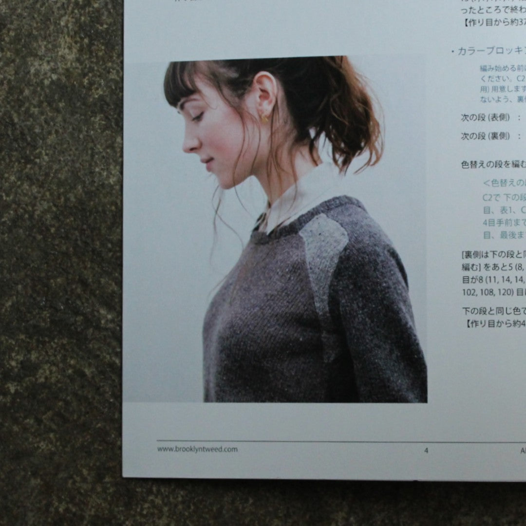 カラーブロッキングのデザインがスポーティでスタイリッシュなセーターのパターン。縦に糸を渡す編みこみ(インターシャ)や、袖と一緒に編むサドルショルダーなど、新しい技法に挑戦できます。