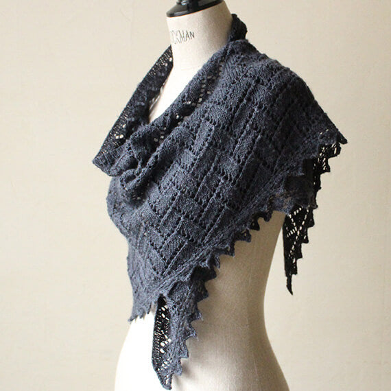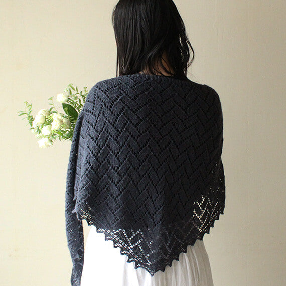 左右に広がるワイドな三角形のデザインは、肩に羽織っても、ぐるぐると巻いても様になります。