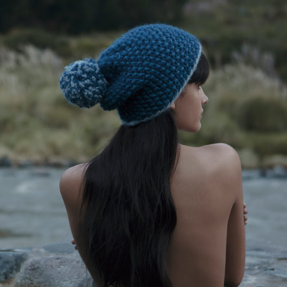 AMANOのバルキーヤーン「MAMACHA」で編む、ボリュームのあるニット帽子。