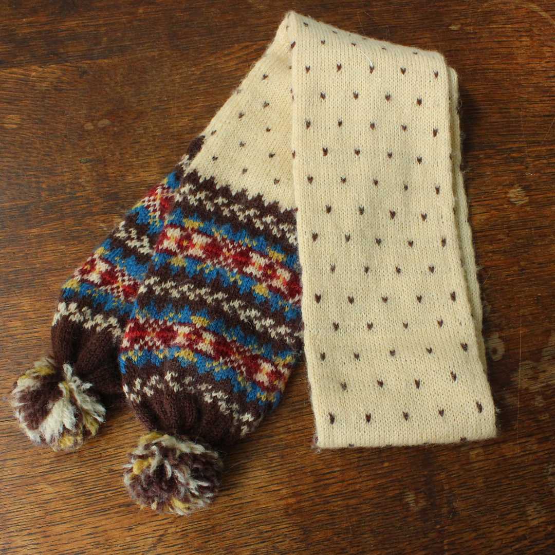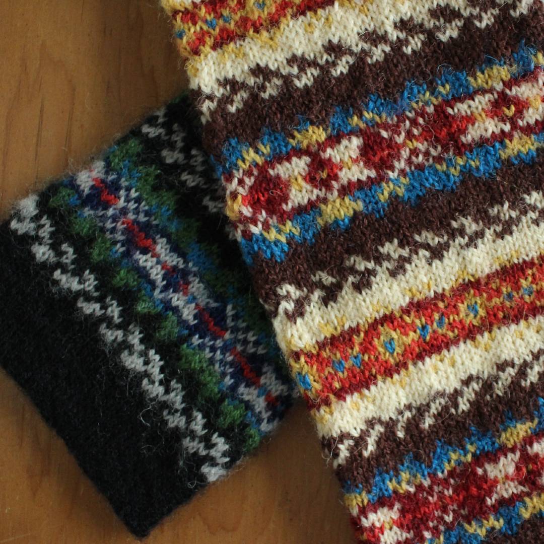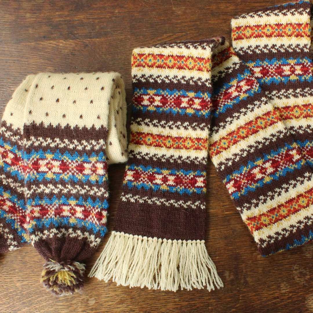 たくさんの色をつかって、細やかな模様を編み込むフェアアイルマフラー。