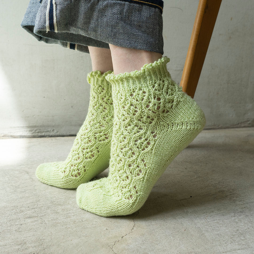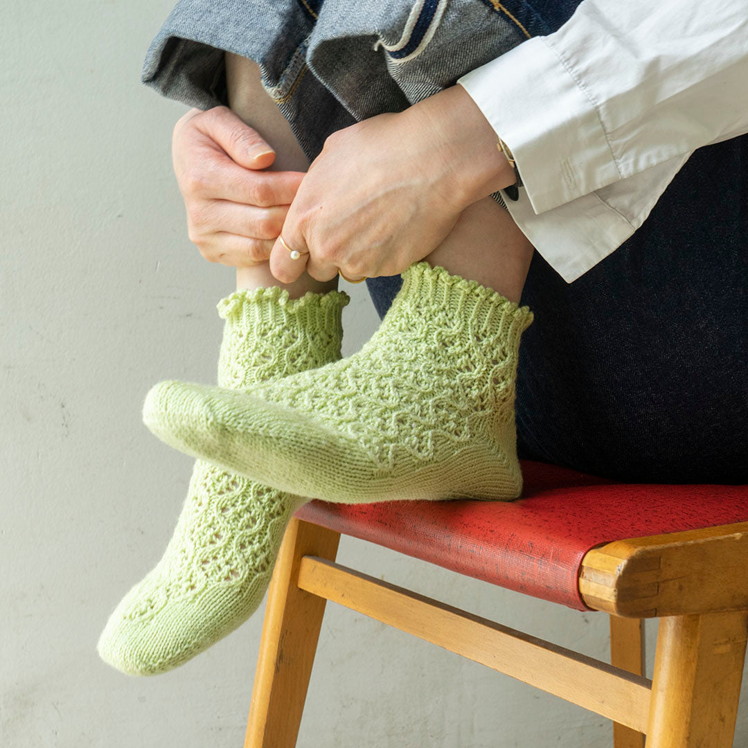 春夏はさっぱりとしたソックヤーンを選んで、軽やかな足元に。サンダルと合わせたコーディネートも素敵です。