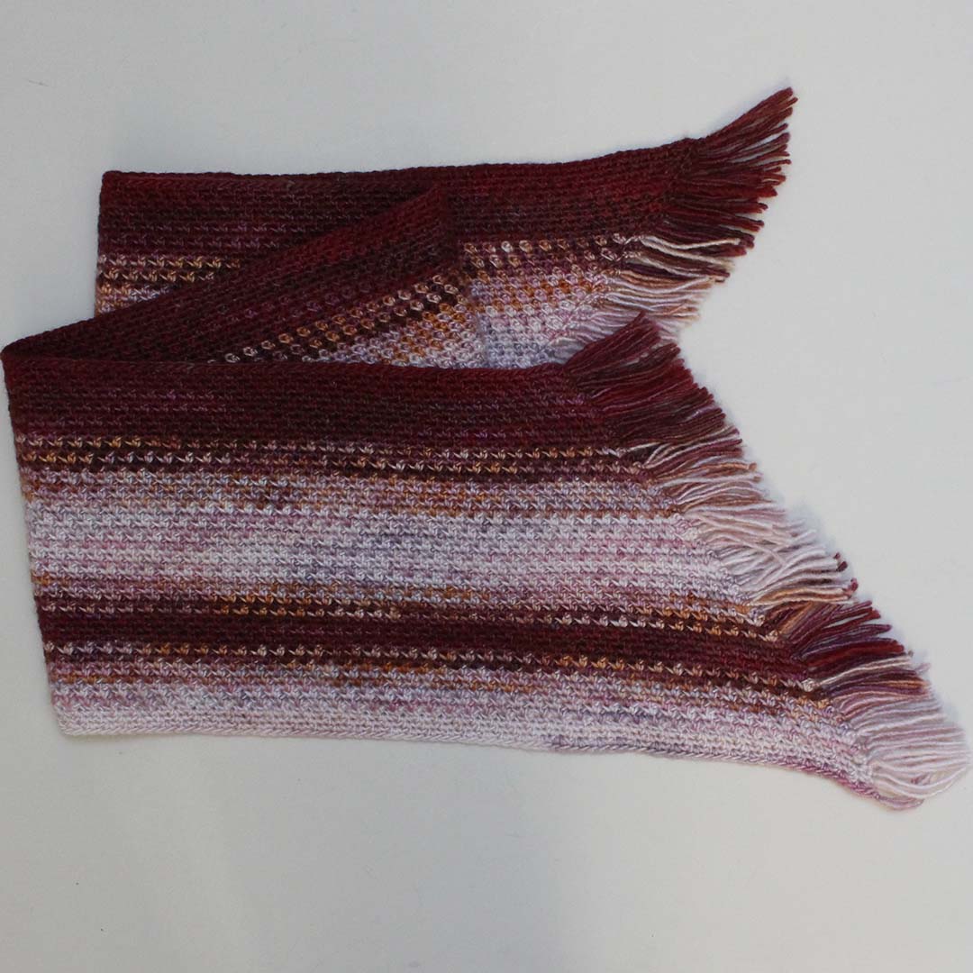 表目と浮き目(糸を手前にして編むすべり目)を組み合わせた模様のマフラー。