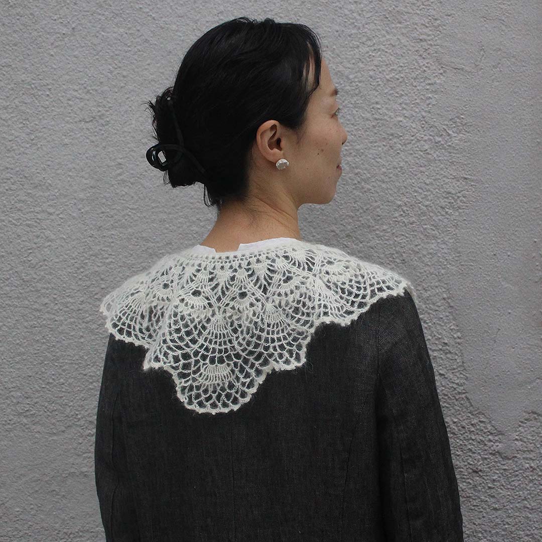 モヘア糸の作品 およそ:襟まわり50cm、襟の幅 13cm(後ろ中心の幅 18㎝)