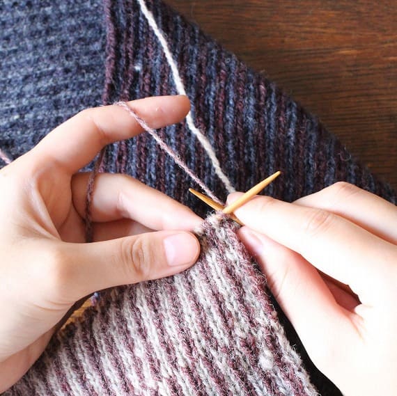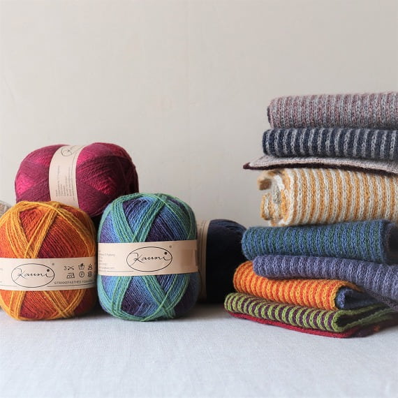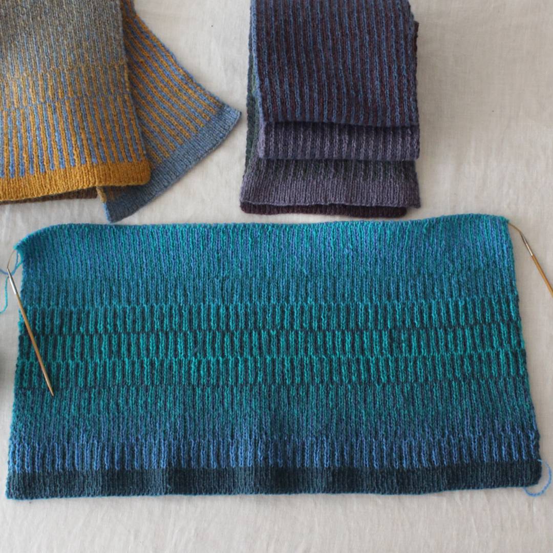 色の組み合わせだけでなく、編み始めの色や、糸を入れ替える回数の違いでも縞模様はバラエティに富んだものになります。