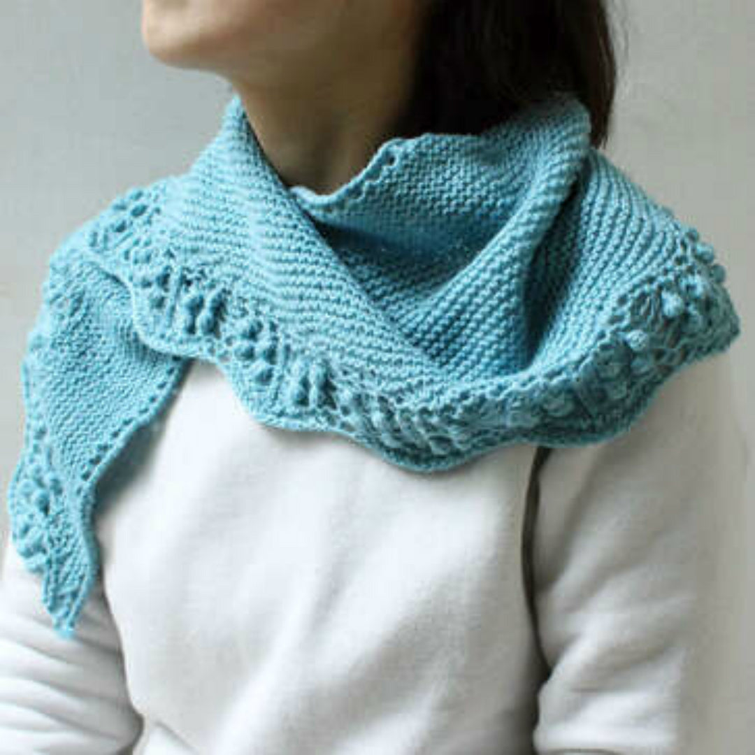 ソックヤーン靴下1足分(約400m)で完成するコンパクトなスカーフのパターンです。