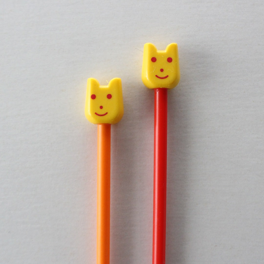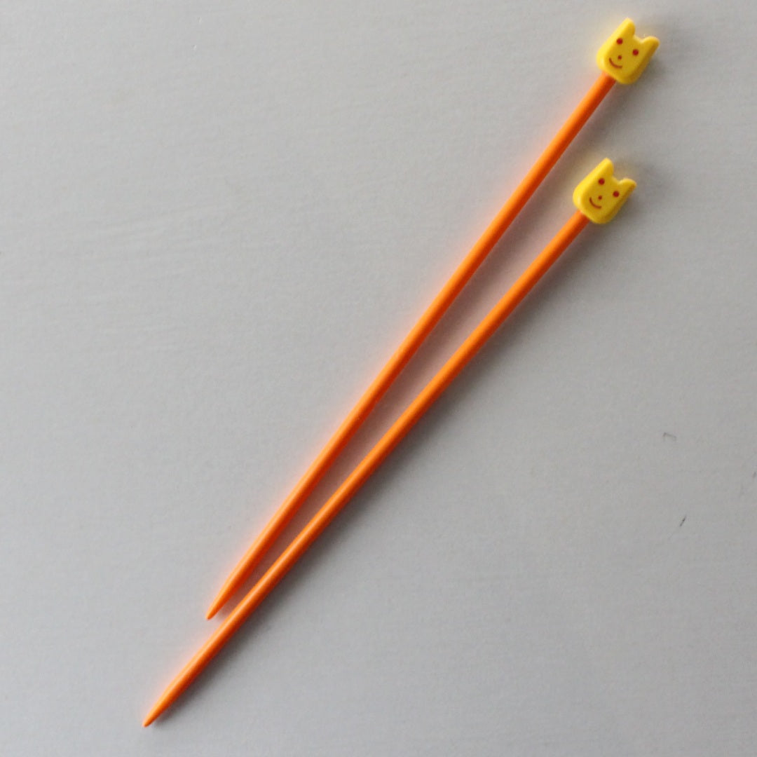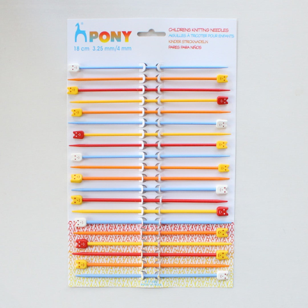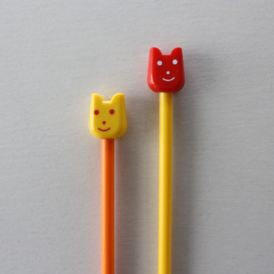 インド「Pony」の、スマイルモチーフがヘッドについたカラフルなプラスティックの棒針です。