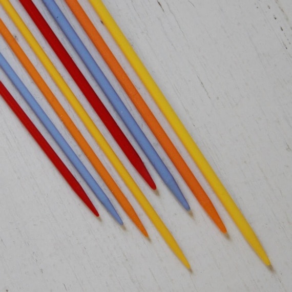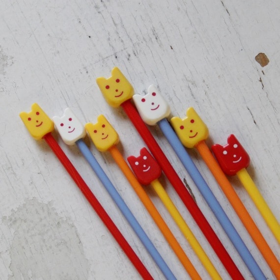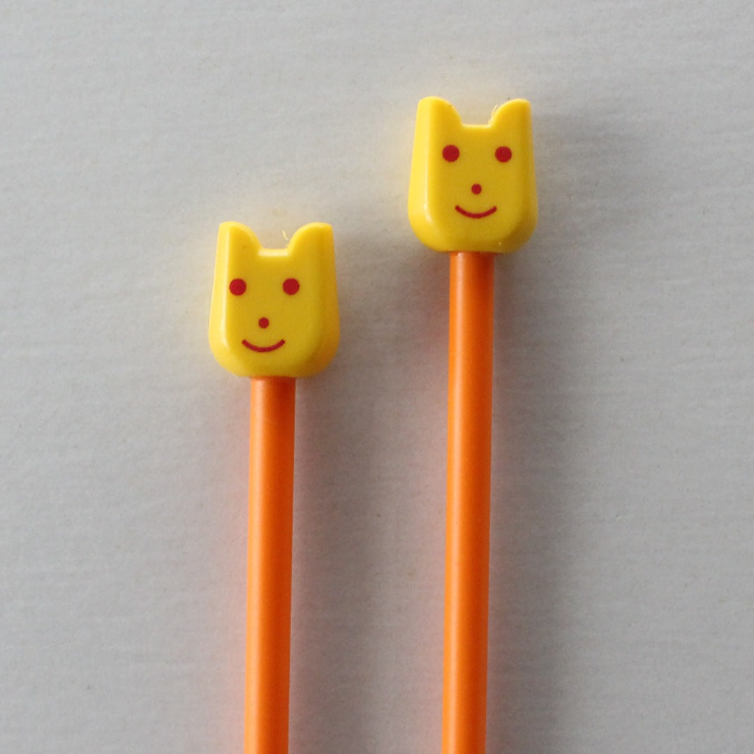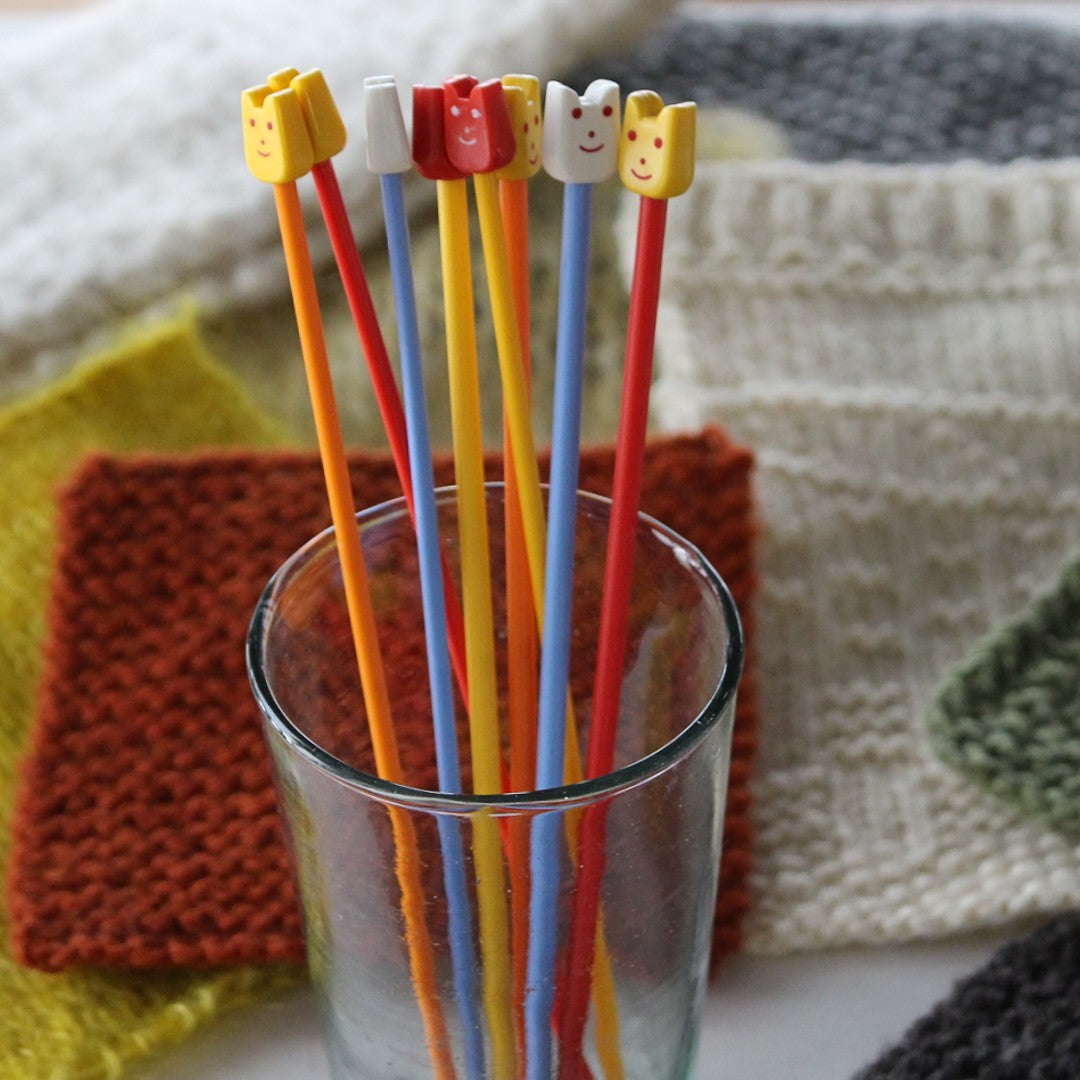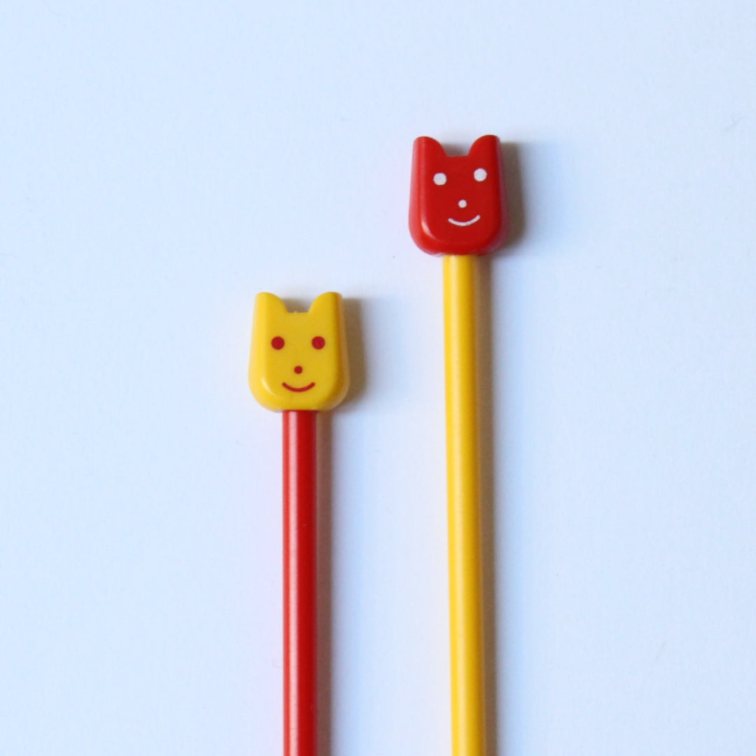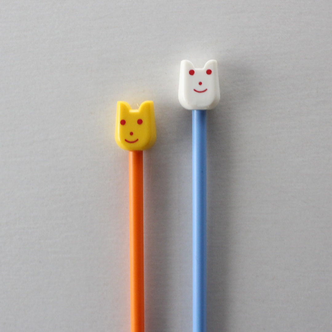 インド「Pony」の、スマイルモチーフがヘッドについたカラフルなプラスティックの棒針です。