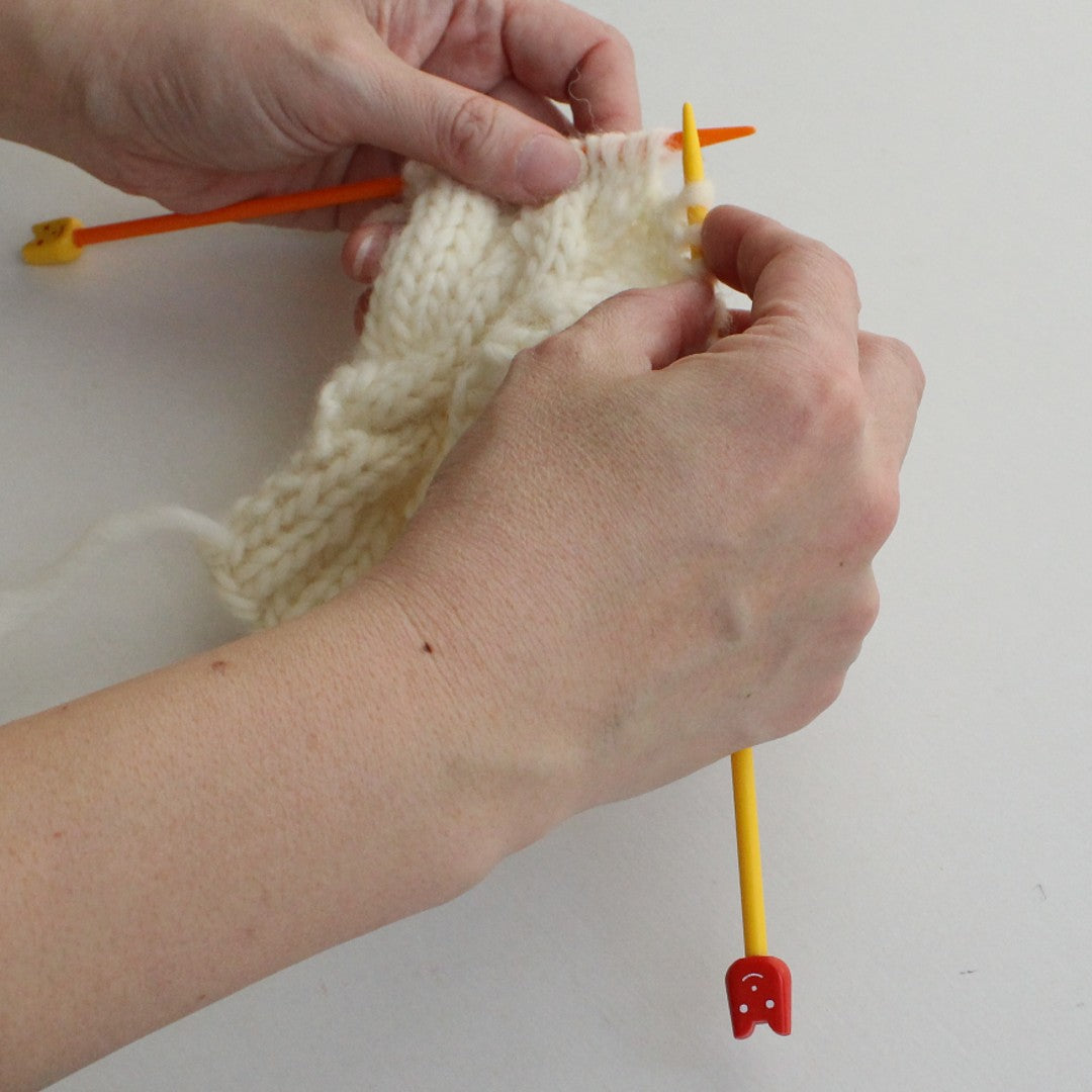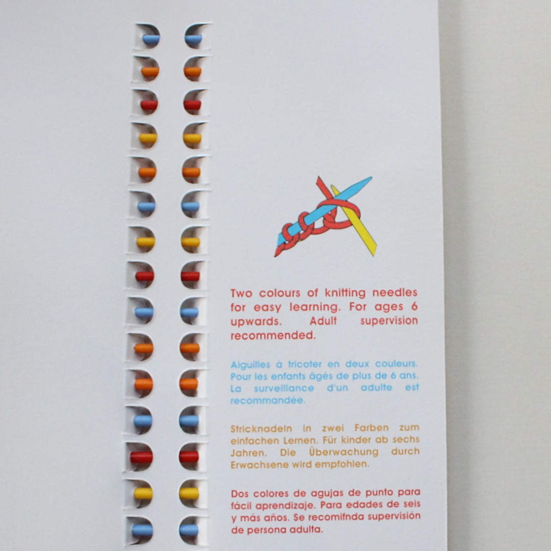 左右の針の色をかえることで、編み方を覚えやすく(教えやすく)なります。