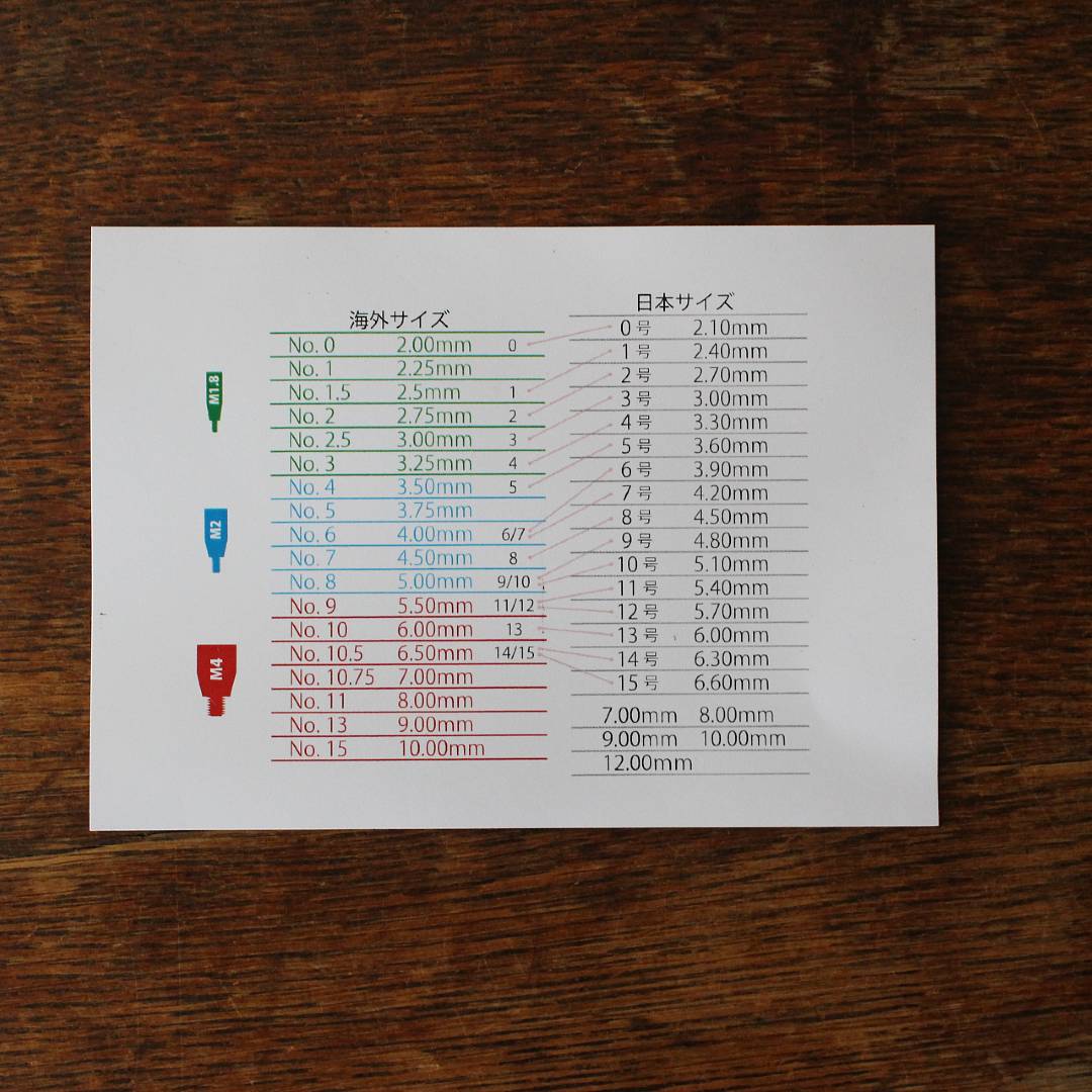 ・ねじ部分のサイズはUS1~3はM1.8、US4~8はM2、US9~15はM4です。付属の対応表もご確認ください。