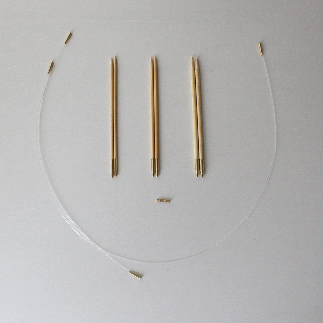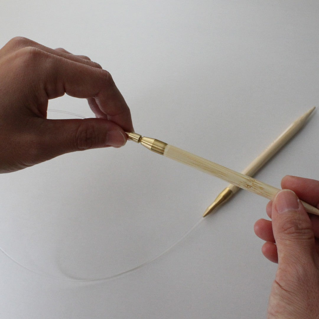セットしているのは、竹あみ針の名産地、奈良県高山で大正時代から竹あみ針をつくり続けている老舗近畿編針(seeknit)の付け替え式輪針。