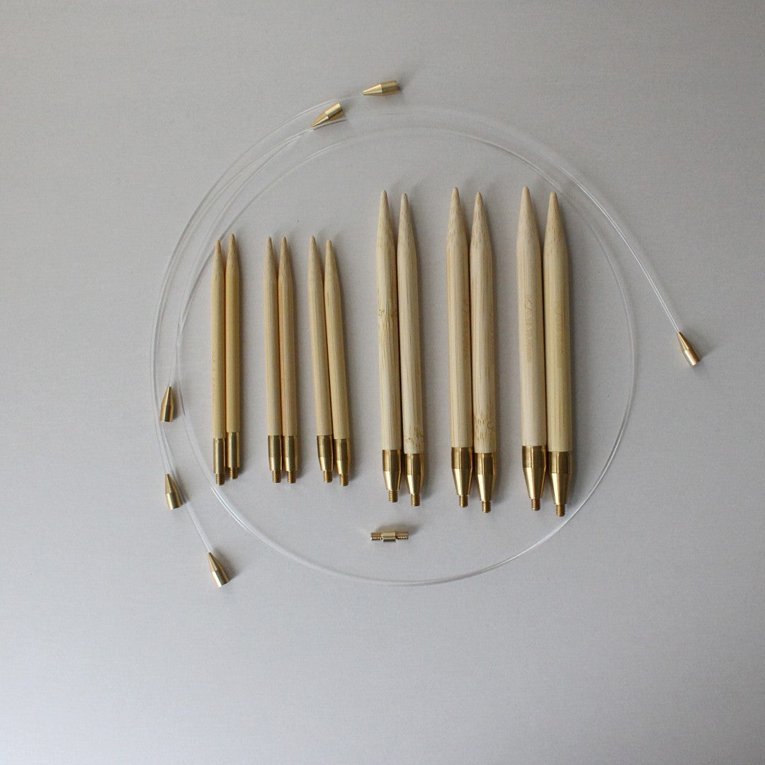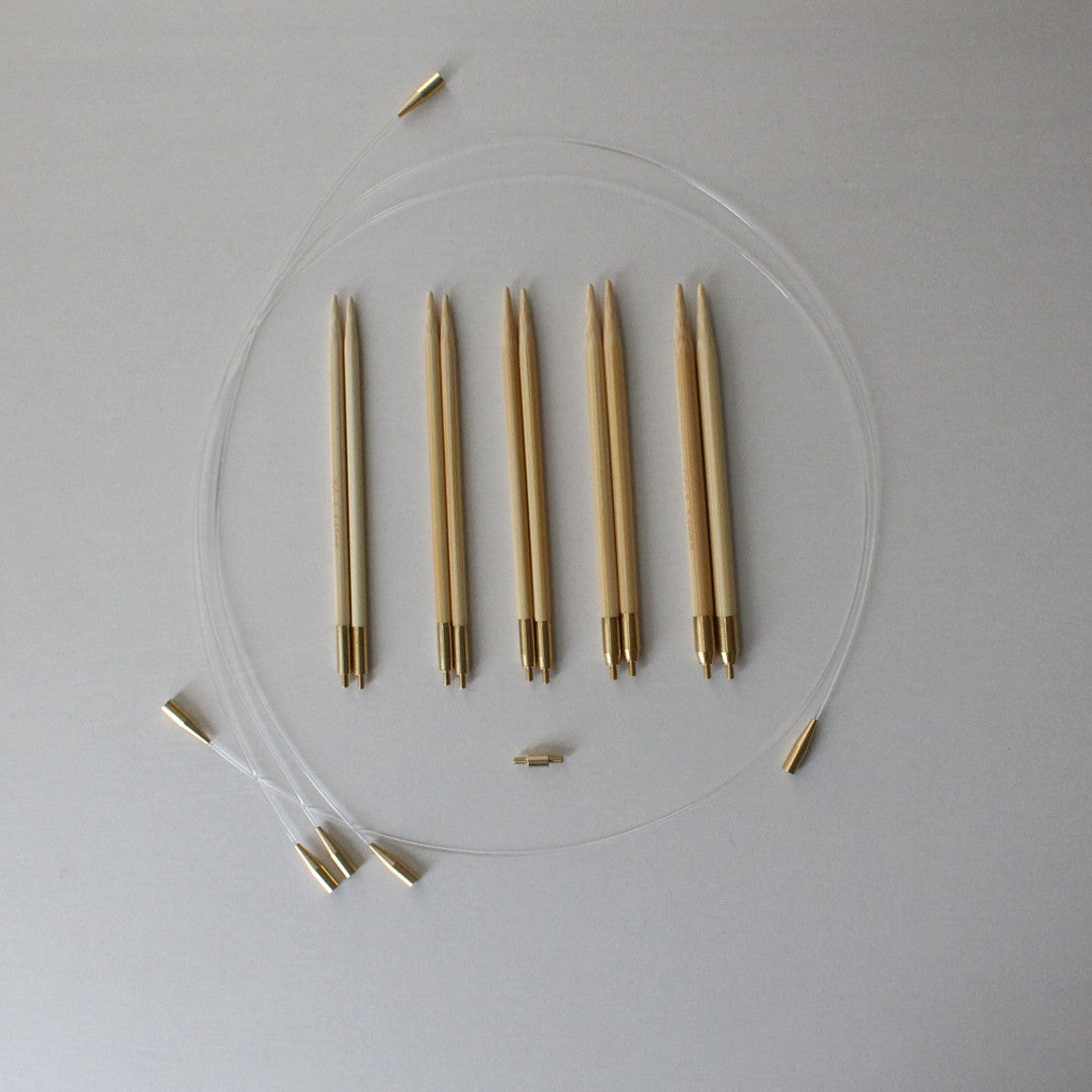みなさまから寄せられたご意見を取り入れながら、少しづつ変化している輪針セット。USサイズの1号~15号を揃えた、どんな太さの糸にも対応できるセットです。
