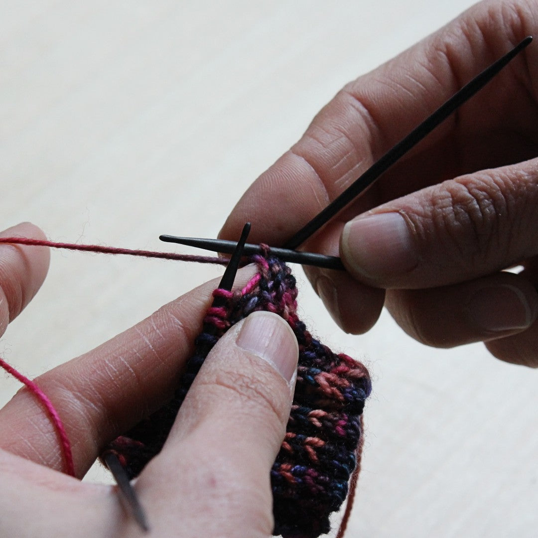 ソックスや帽子などの小物やセーターの袖など、輪で筒状に編むときにおすすめのお道具です。