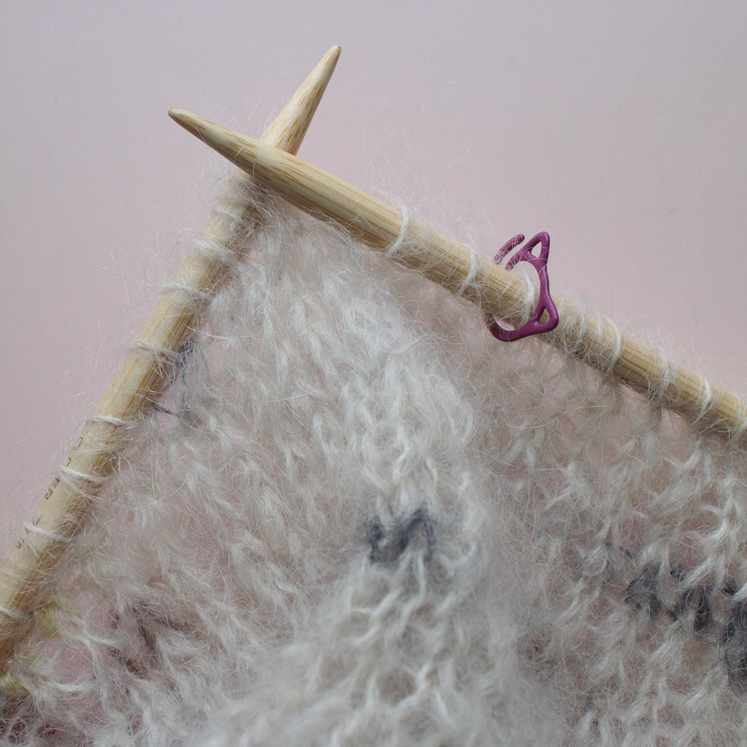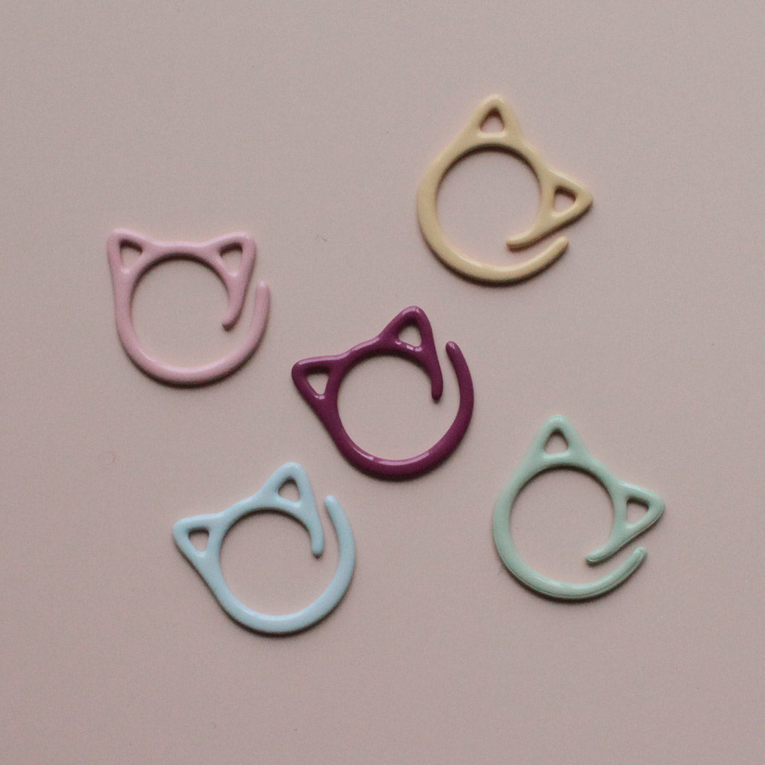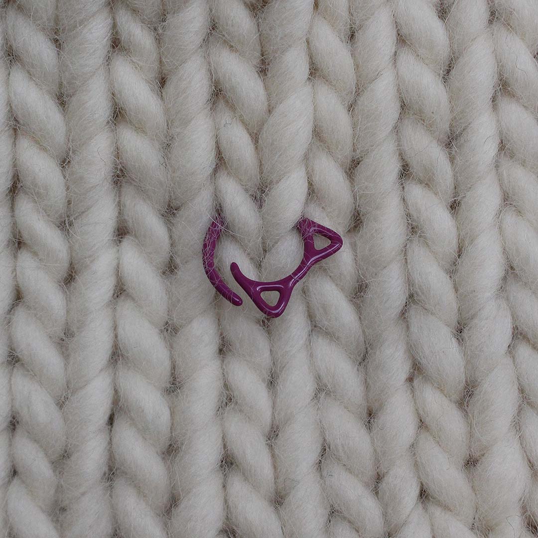「Neko」は編地にひっかけることができるので「段数リング」として、また大きめサイズの棒針で編むときの「目数リング」にも活用できます。