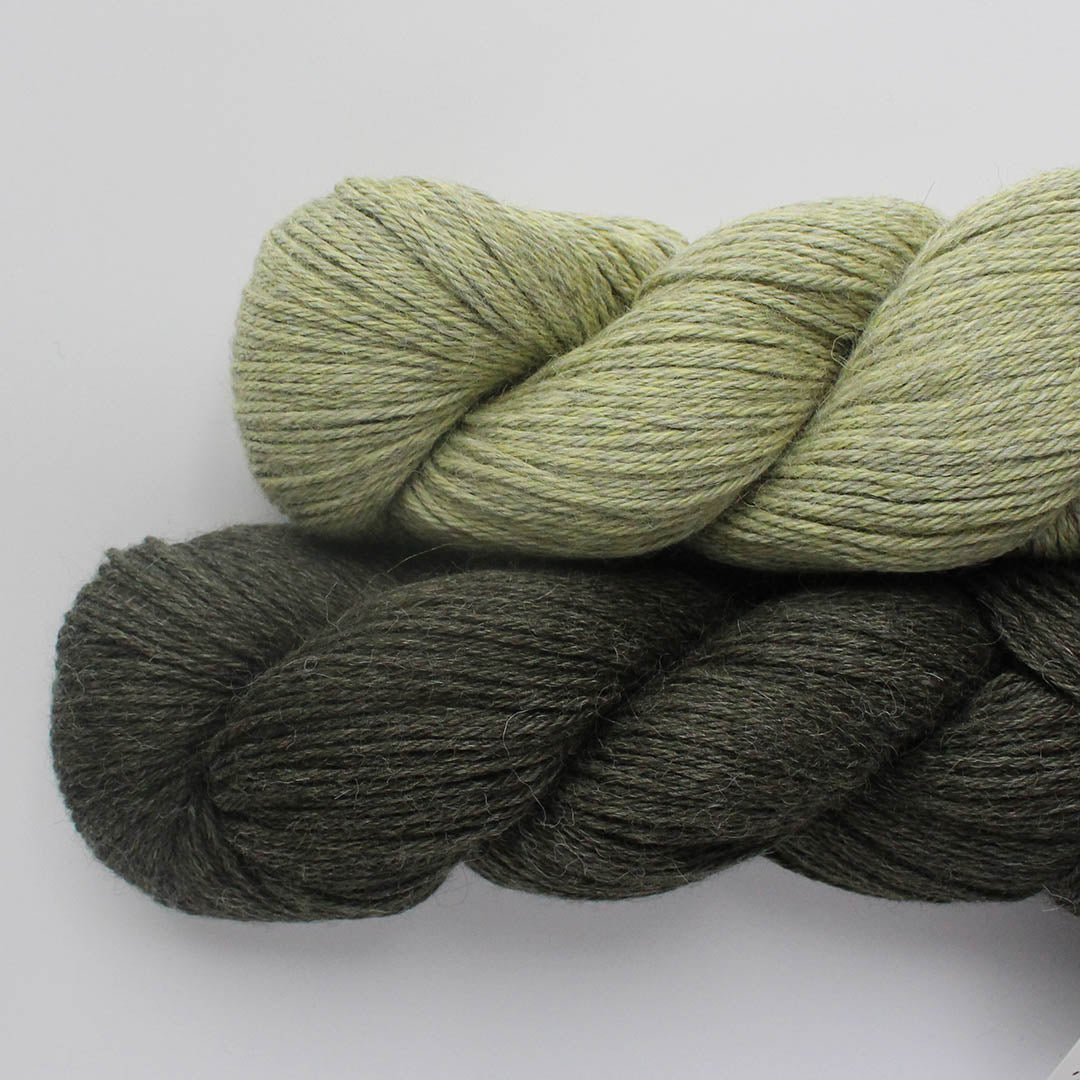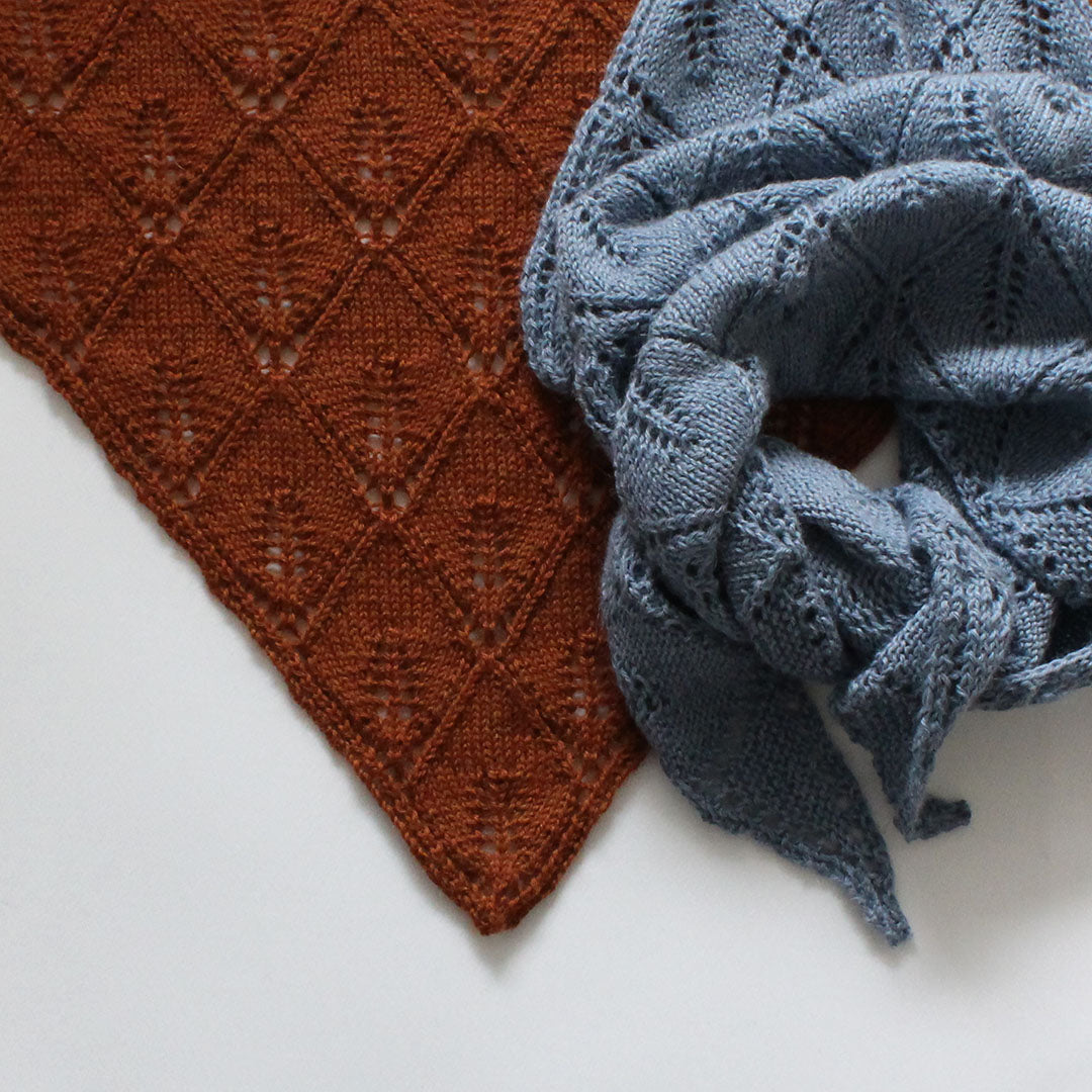 棒針編み初心者向けキット「Beginner’s project series 4 レース模様の三角ショール キット 」には2かせ使用しています。