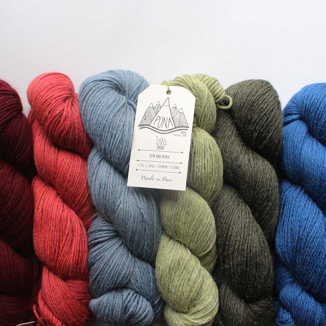 ケチュア語で「アンデスの山」という名をもつPuna は、ペルーの高地で丁寧に集められたベビーアルパカの 原毛を使った、毛足が長くやわらかなAMANOの代名詞ともいえる糸。