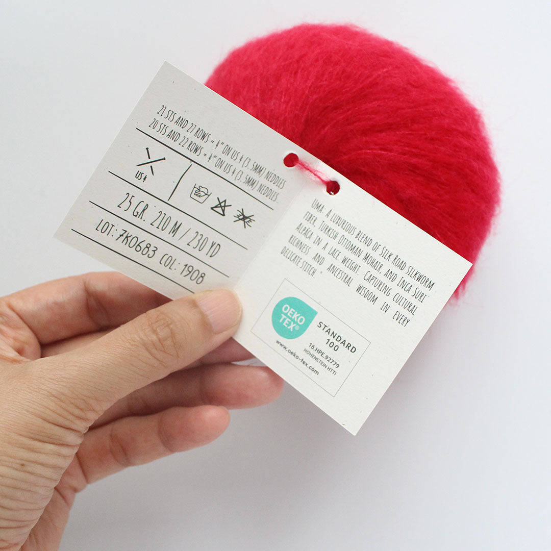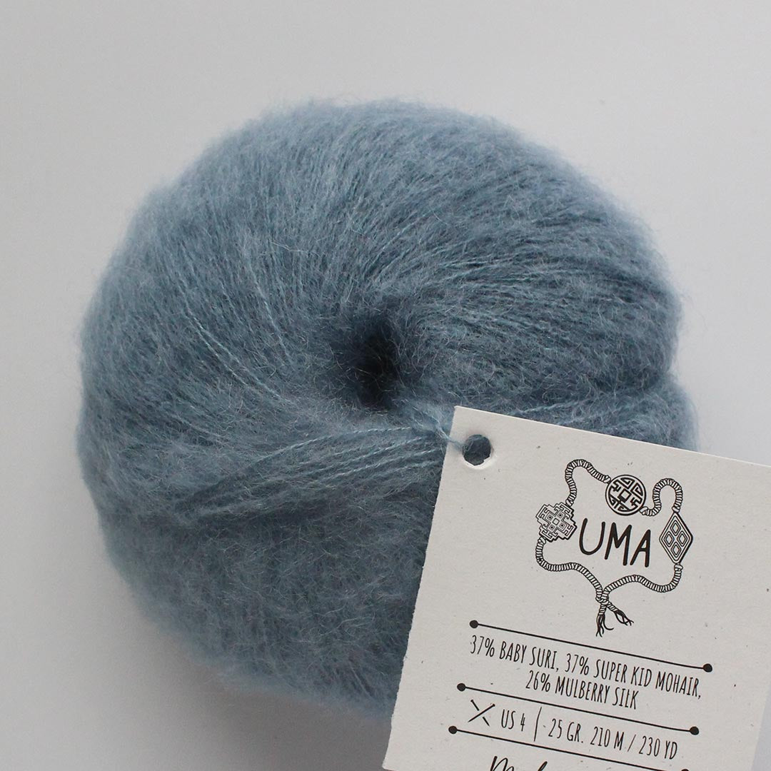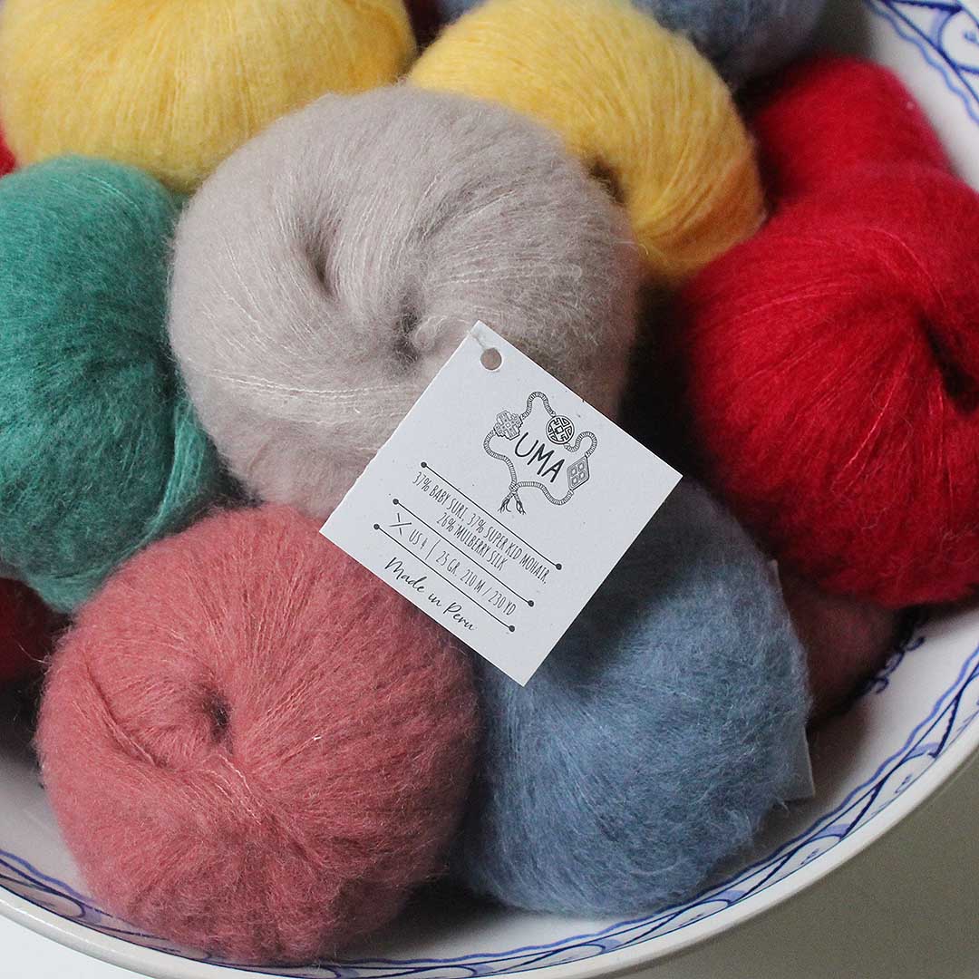 化学繊維がブレンドされている場合も多いモヘアですが、UMAは代わりにシルクをつかっているので、天然繊維100%なのもうれしいですね。