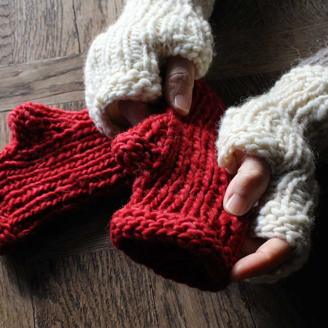 作品例「ウールクラシカで編むフィンガーレスグローブ」キットはこちらから