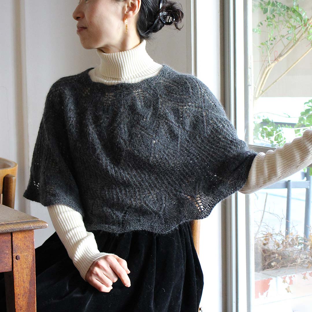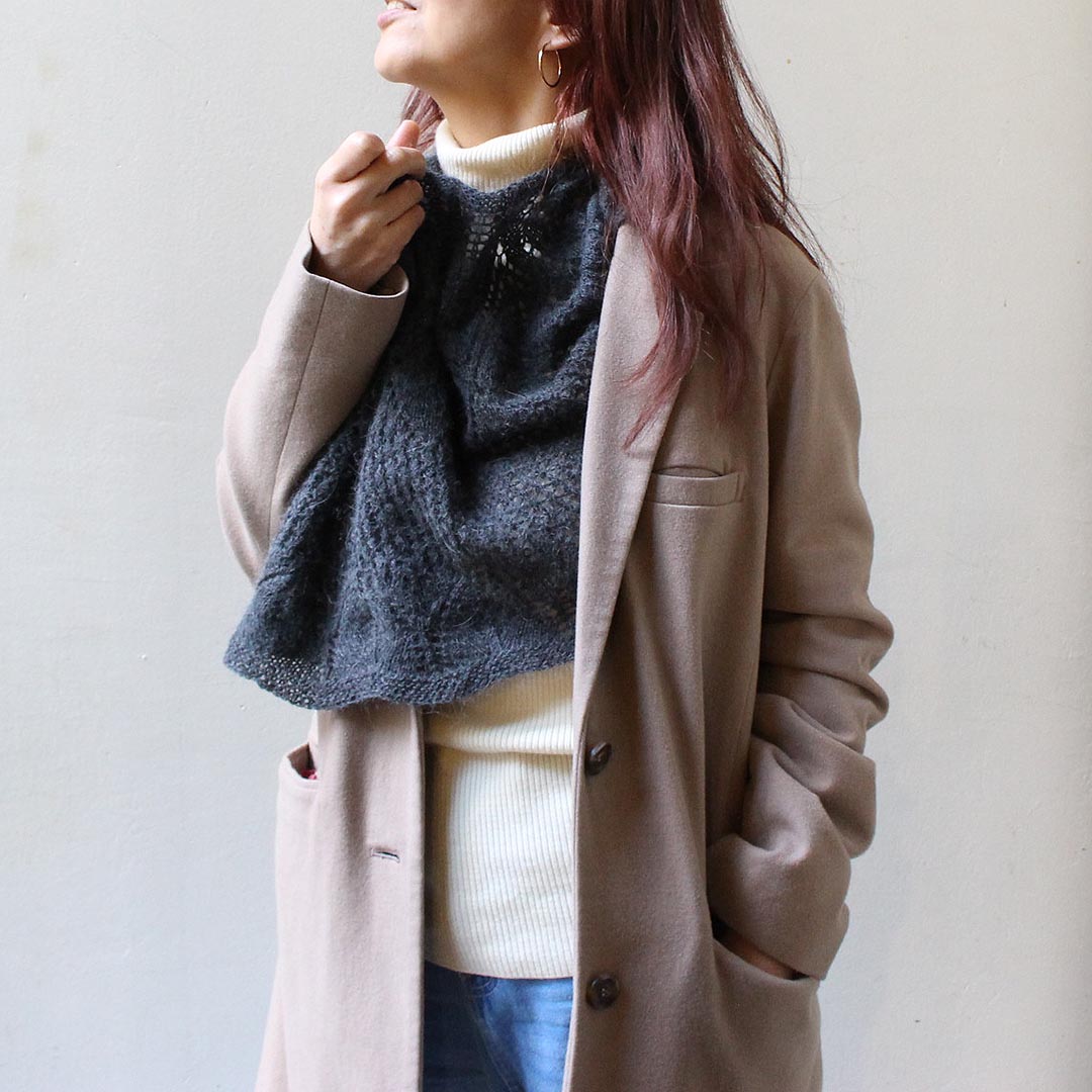 作品例のように、アンゴラの毛足がレース模様の輪郭をやわらかく引き立ててくれます。