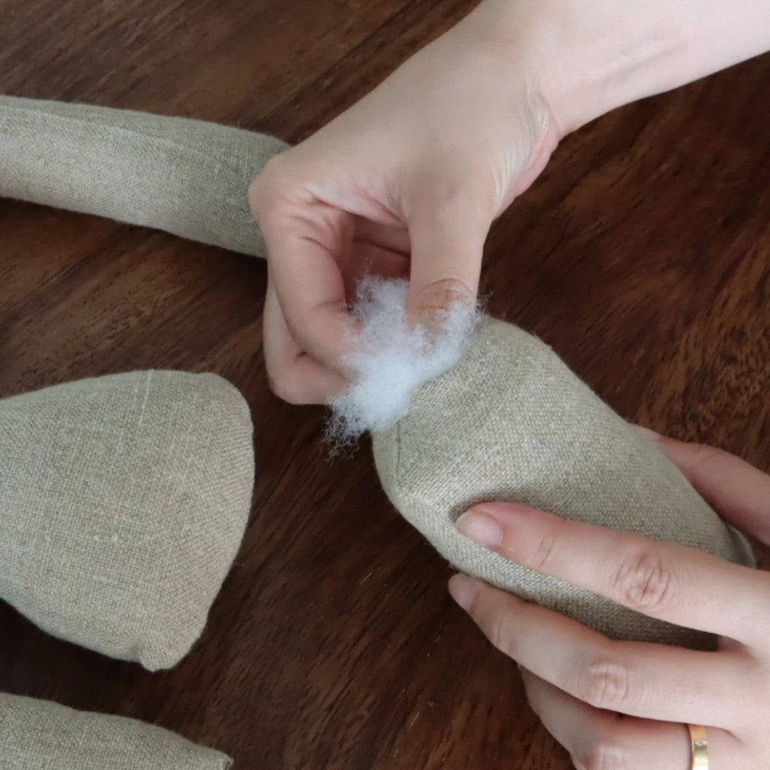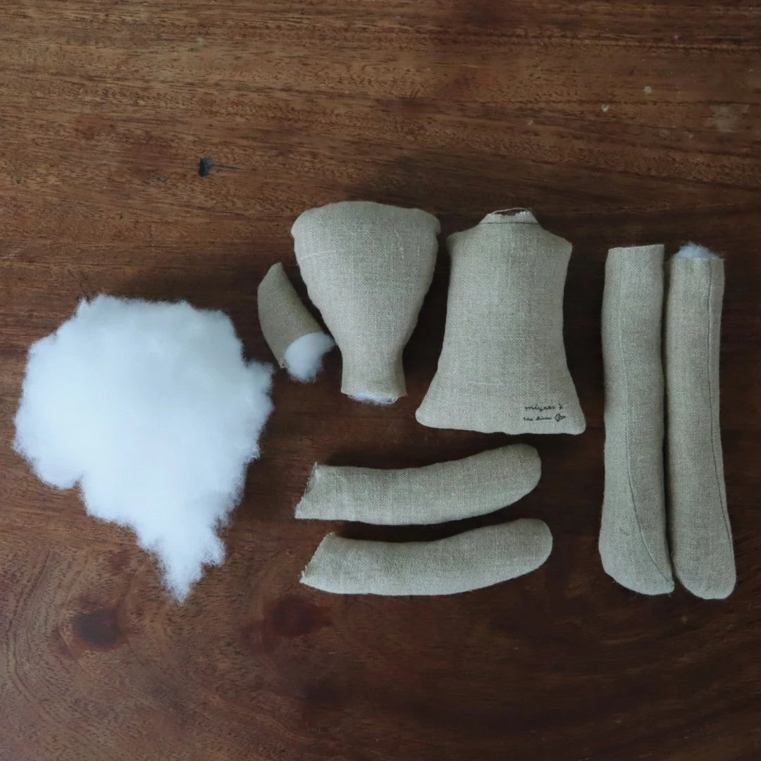 パーツをミシンで縫う工程まで終えた状態でお届けするので、綿をつめるところからお人形づくりをスタートすることができます。