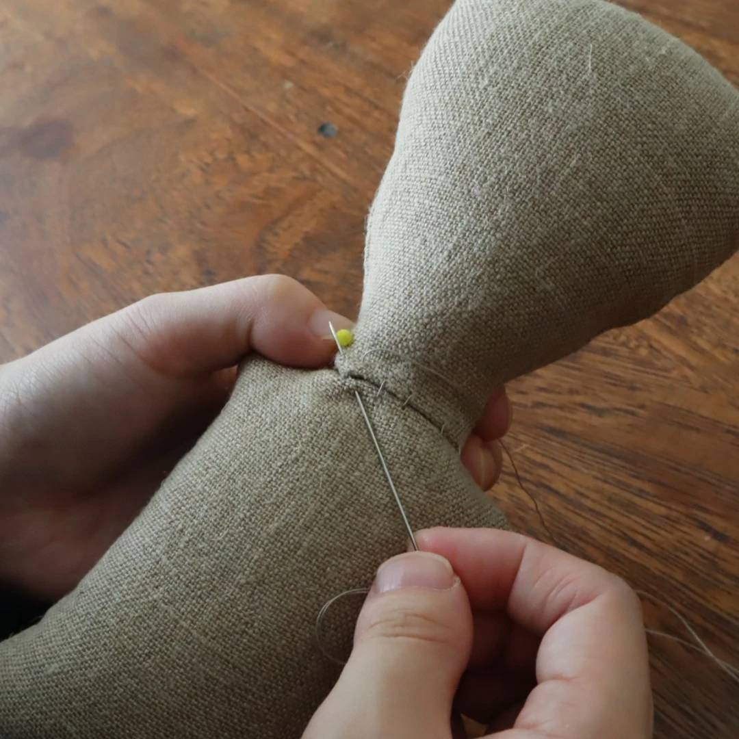 ・頭とボディを縫いつなげるときは、首がぐらつかないように、追加で綿を詰めながら角度を調節しながらつけてください